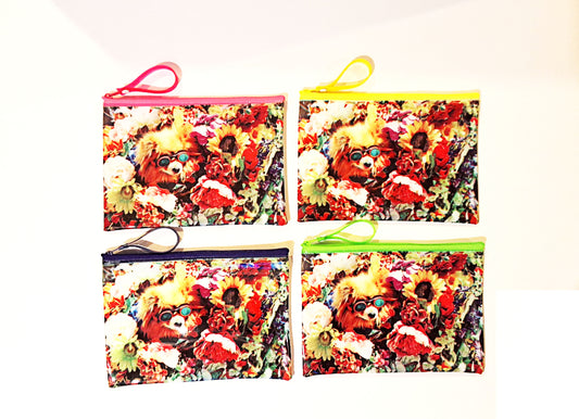 Scoop Flower Pompom Flat Coscase with Yellow Zipper